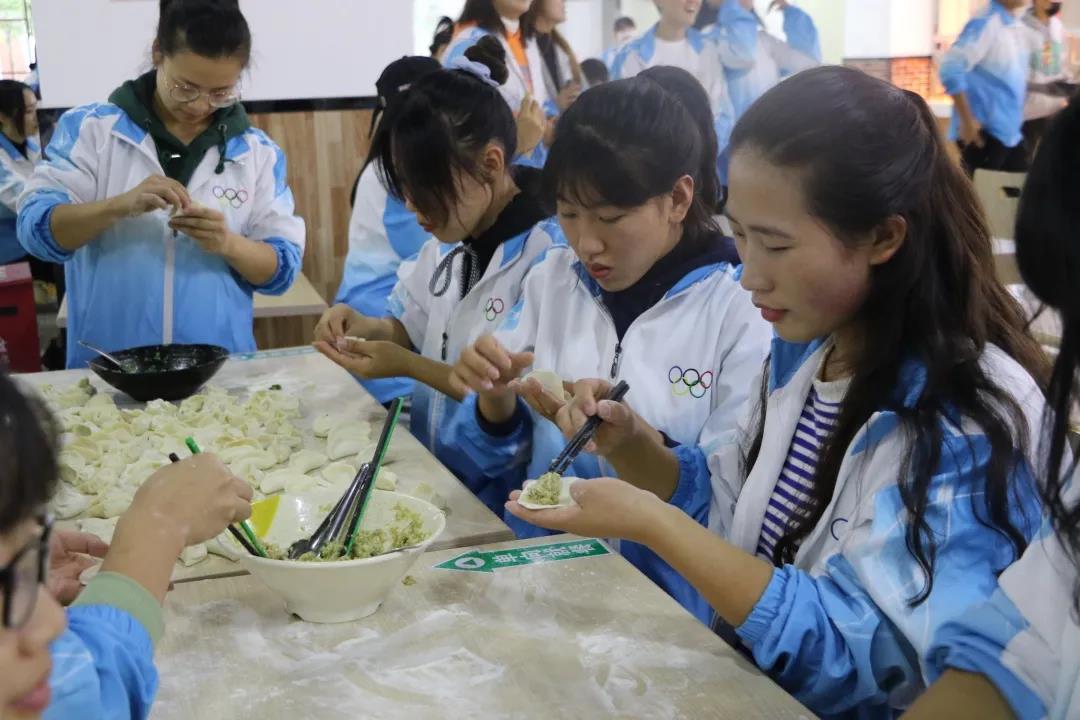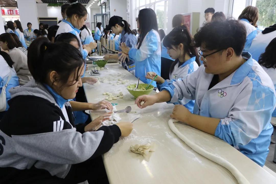 为了欢度双节日,一食堂一楼的工作人员早早的做好了准备,为同学们提供干净宽敞的活动场地。在活动中,同学们热情高涨,现场气氛活跃,在谢明轩同学的带领下,大家积极参与歌唱和舞蹈。唱出了我们的心声,舞出了我们的快乐。各班通过“擀面皮”游戏,来赢取面团的数量,为班级争取更多的面,包更多的饺子,通过“传声筒”游戏,可在下一轮做月饼环节中,赢得更多的月饼材料,在这个过程中,大家团结一致,各个班级齐心协力共同完成了饺子和月饼的制作,增进了同学之间的感情,加深了团圆的氛围,让同学们放松了心情,感受到了“家”的温暖。