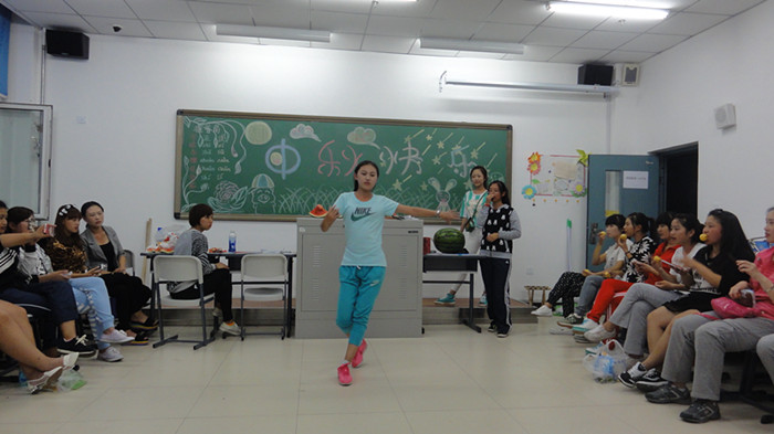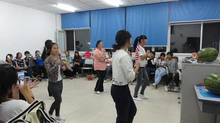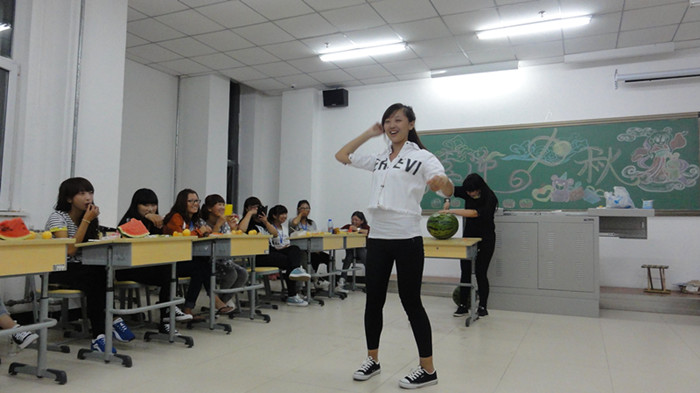 学院学生工作处提前为同学们过节准备好了月饼,我分院张雅洁书记特意嘱咐为同学们买来各种时鲜水果,让同学们感受到学院、老师们对大家的关心。19时联欢开始,教室内早已瓜果飘香,笑语盈耳,各教室的布置充满浓浓的节日氛围。联欢开始之初,老师们对各班同学表示了中秋佳节的祝福,并对同学们的大学生活寄予期望。此后,同学们开始表演精心准备的节目,精彩的表演充分体现了分院的专业优势。学前教育1401班由助理导员以一曲劲舞开场,立时掀起在场高潮。学前教育1404班表演的群舞《洗澡歌》,一曲跳罢,不仅是专业技能的展现,更让人感受到新同学间的团队精神。各班同学竞相献艺,唱歌、跳舞、做游戏,现场气氛热烈而欢乐。