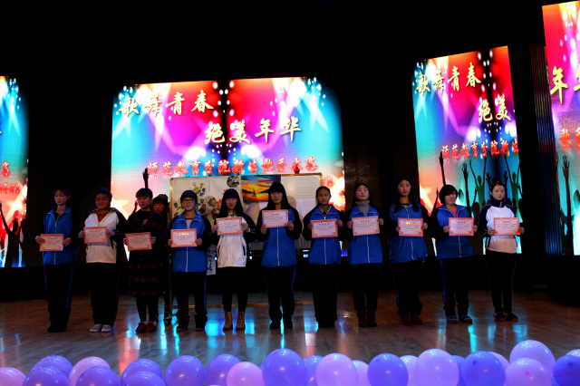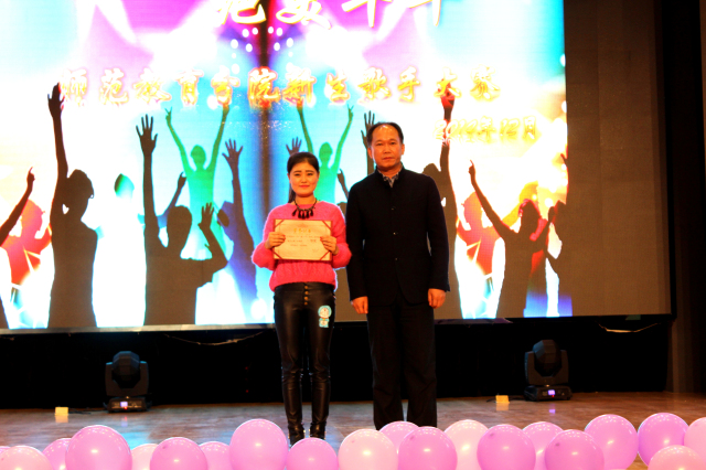 师范教育分院卢云峰院长为歌手大赛二等奖获得者颁奖