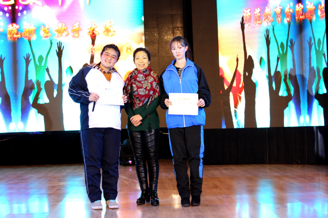 院党委李兵副书记为歌手大赛一等奖学前教育1406班冯霄同学颁奖