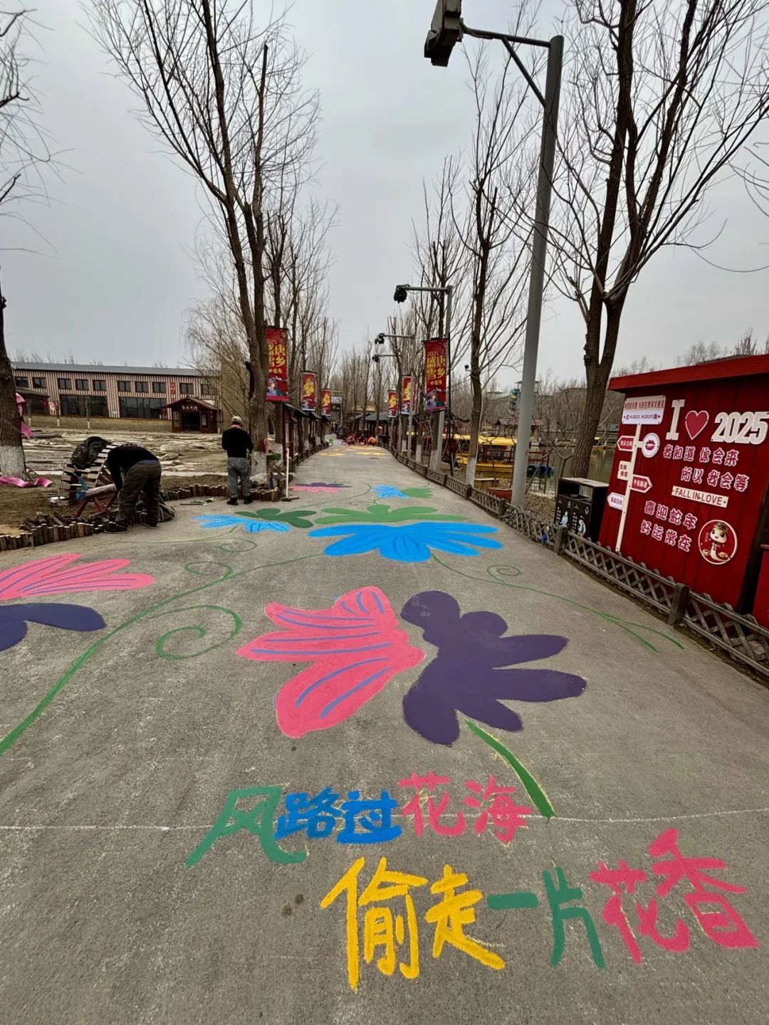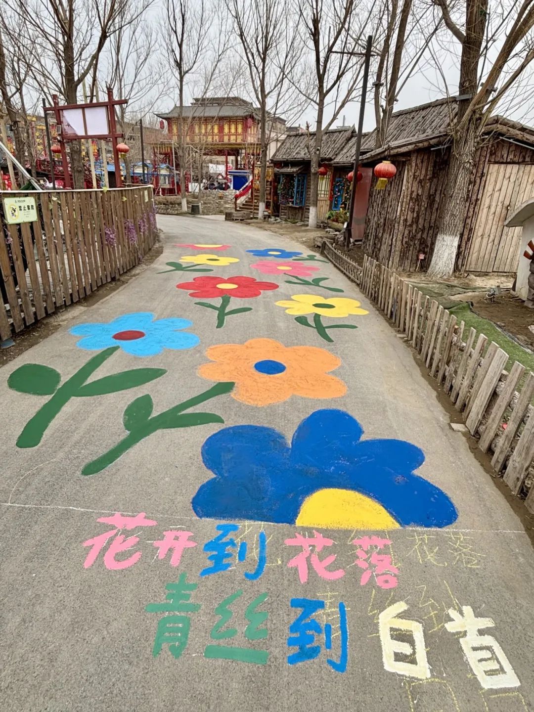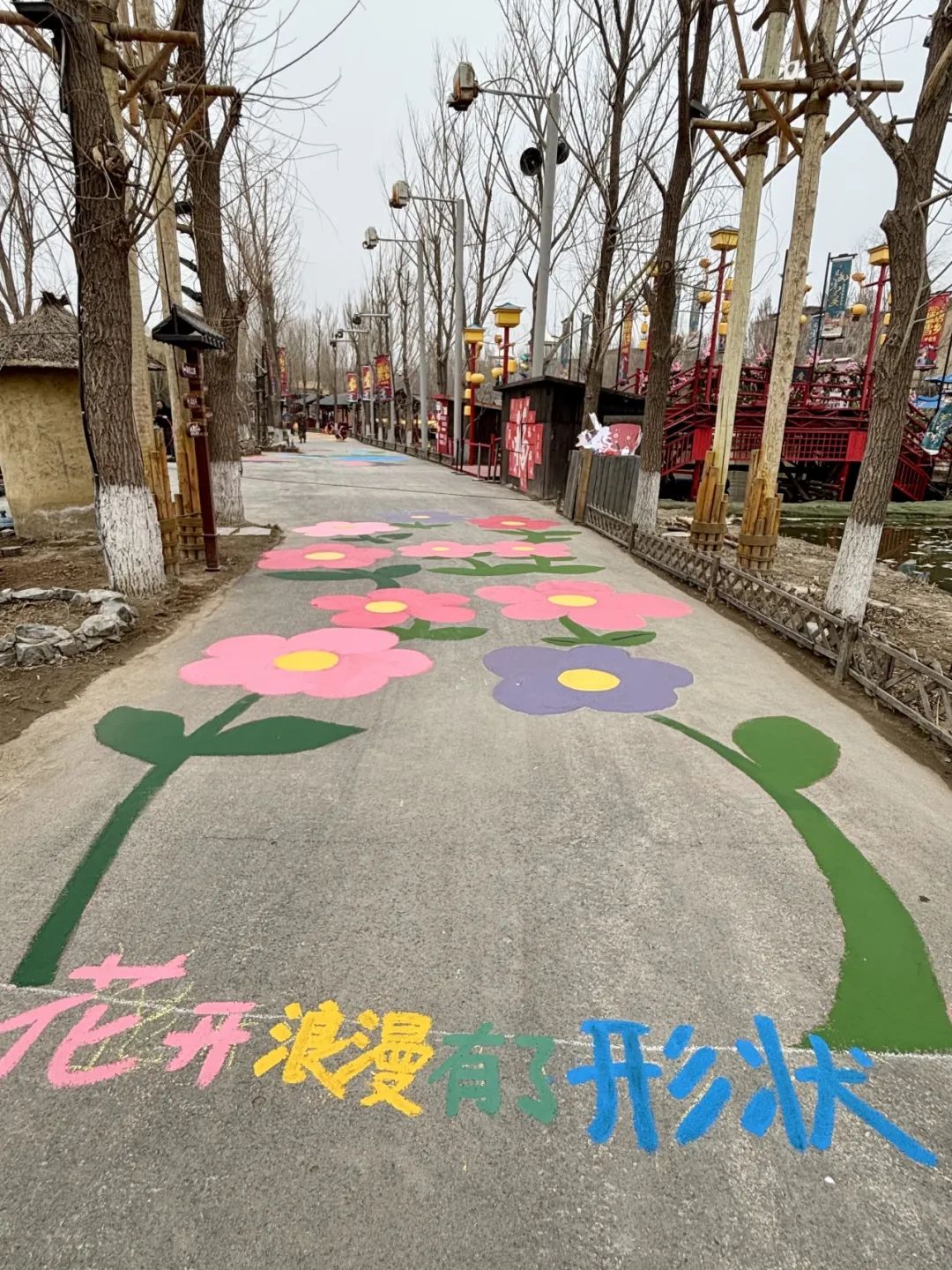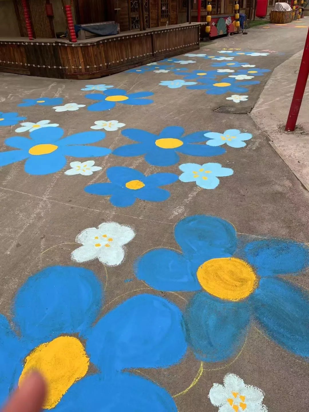同学们以画为纽带,将艺术与公益、自然与人文完美融合,为景区带来了一抹独特的温暖亮色。同学们以爱为笔,绘就奉献画卷,用点滴行动,传递温暖真情。一幅幅地面彩绘让景区增添光彩,让创意与自然共鸣,为景区添一抹独特人文景致。在一次次色彩的碰撞中,师生们共同绘就了一幅幅以花朵为主题的地面绘画,通过色彩渐变和细腻笔触展现春的生机。