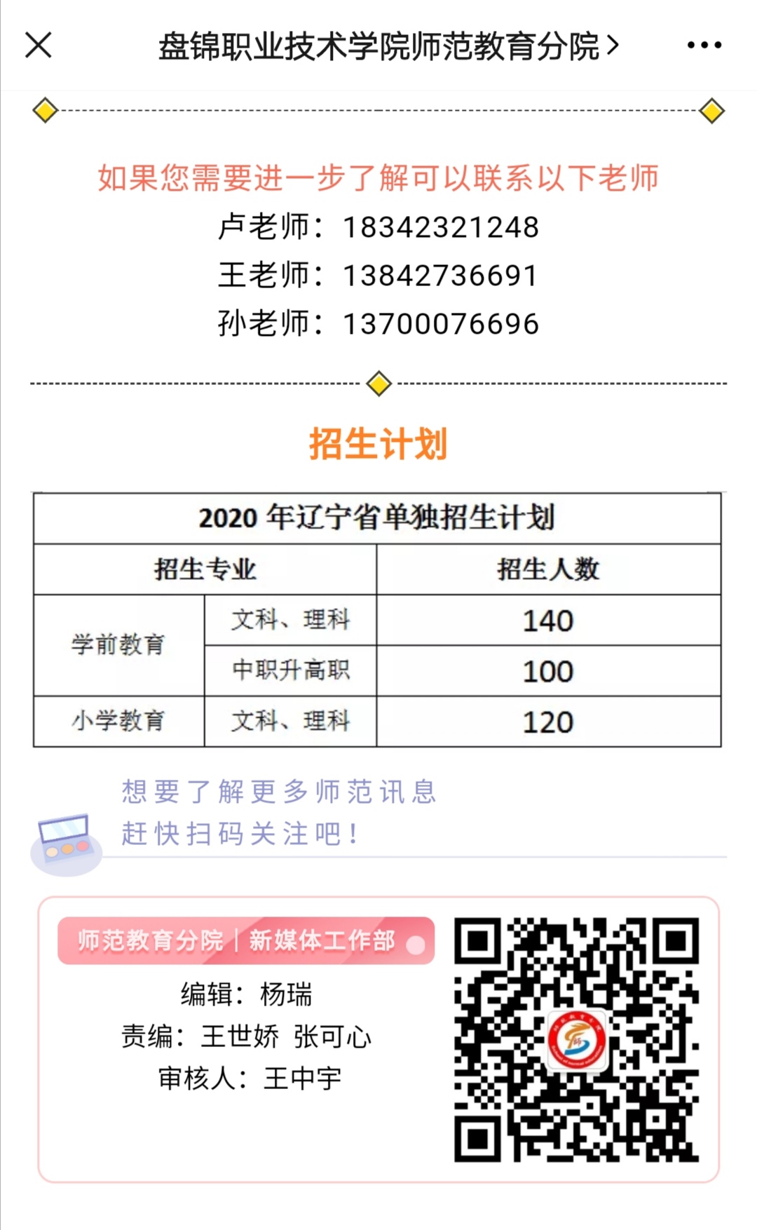 师范教育分院2020年招生简章