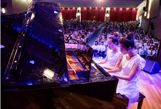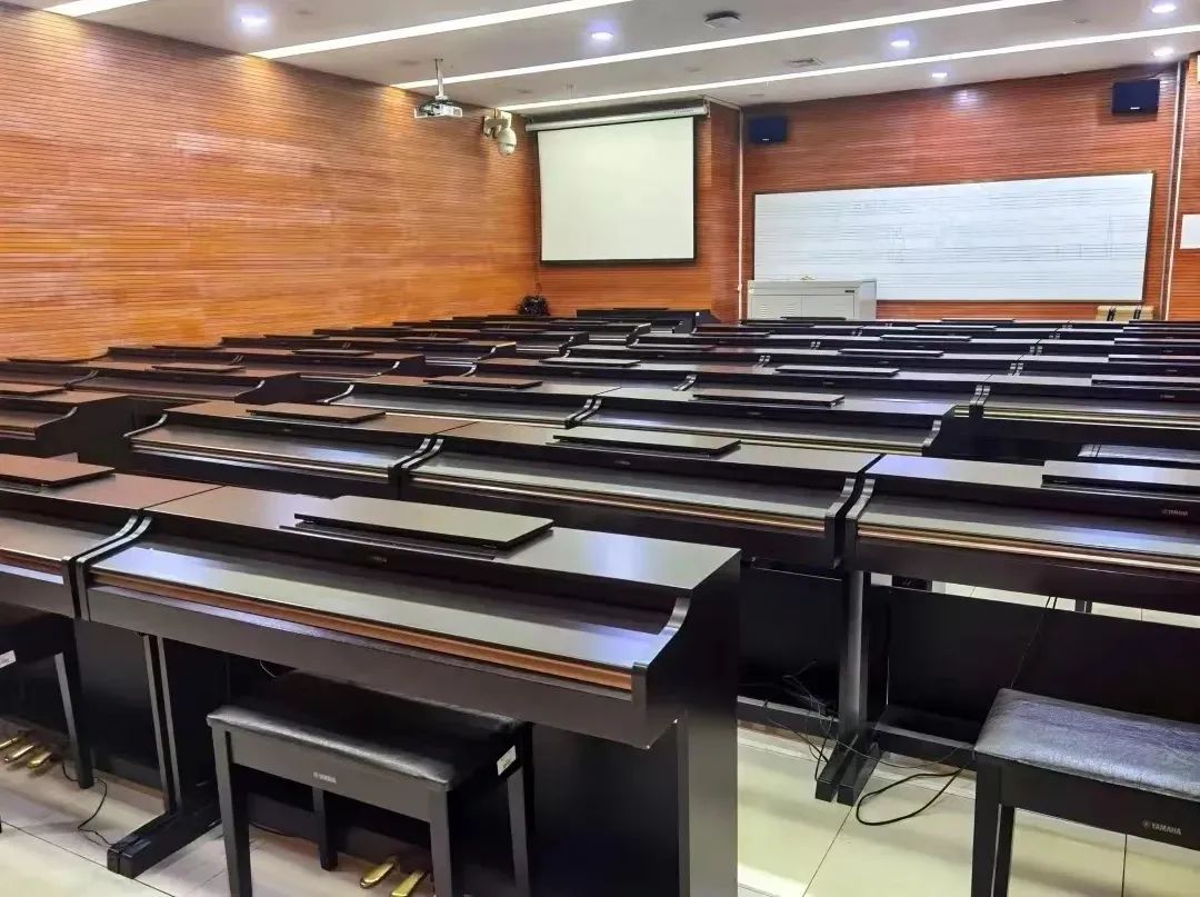 4670平方米的艺术中心,有合唱室1个、舞蹈教室4个、琴房64个、视唱室2个、数码钢琴教室2个,能容纳近1000人的多功能专业汇报演出厅1个。