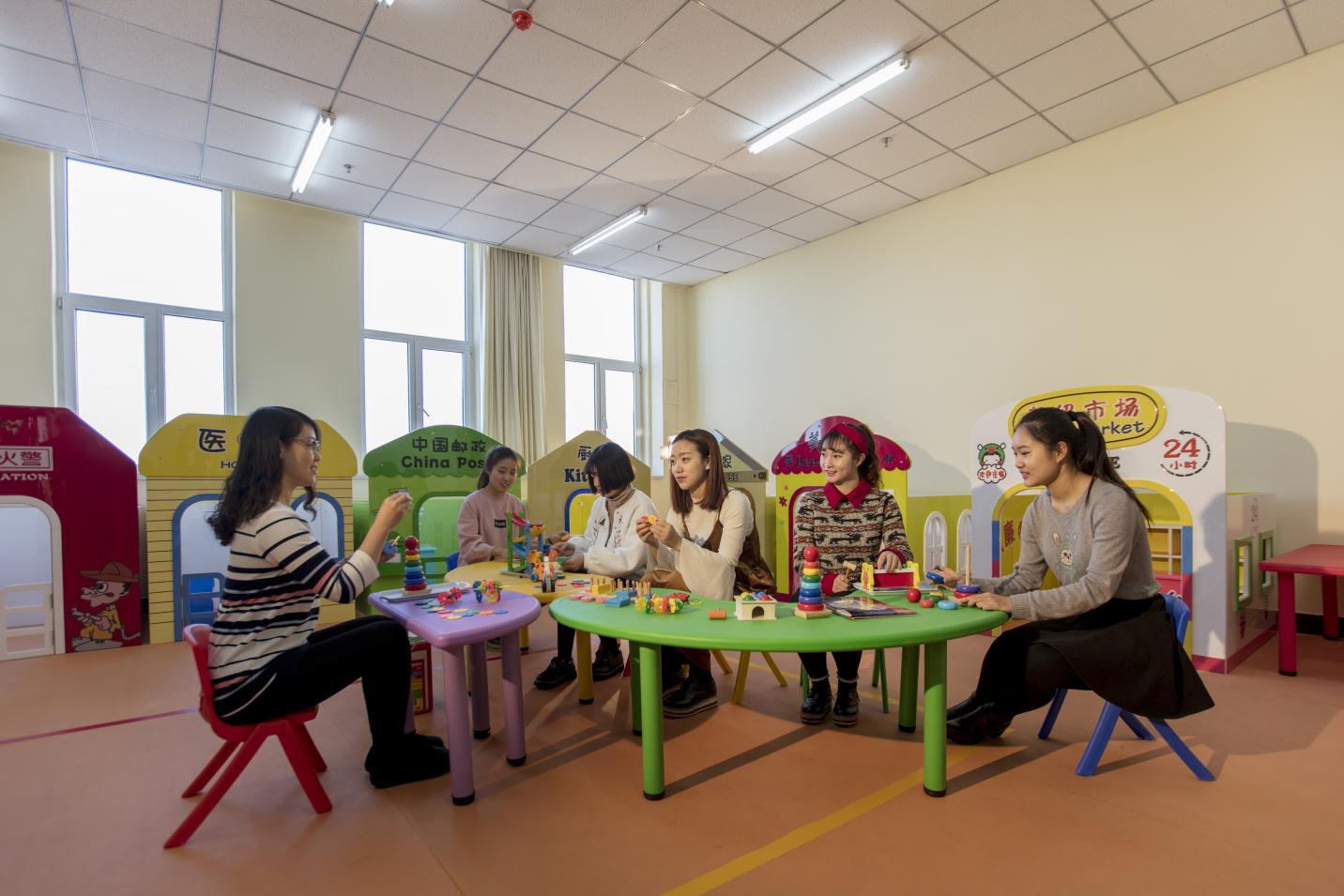 建设有蒙式教育实训室1个、感觉统合实训室1个、早期教育实训室1个、幼儿游戏活动实训室1个、奥尔夫音乐实训室1个、幼儿园模拟仿真实训室1个、智慧实训室(含语言技能实训室)1个、书法实训室1个、手工制作实训室2个、美术画室1个。