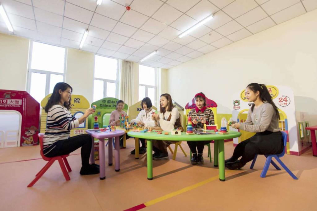 (2)校内实训条件完备,实训中心拥有婴幼儿保育实训室、婴幼儿仿真模拟实训室、亲子教育实训室、感统实训室、奥尔夫音乐实训室、蒙台梭利实训室、多功能智慧实训室、游戏实训室,以及1470平方米的文化艺术中心,包括电钢琴教室、美术画室、智慧书法实训室、舞蹈教室等完备的实训场地及设备。