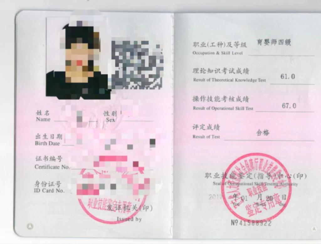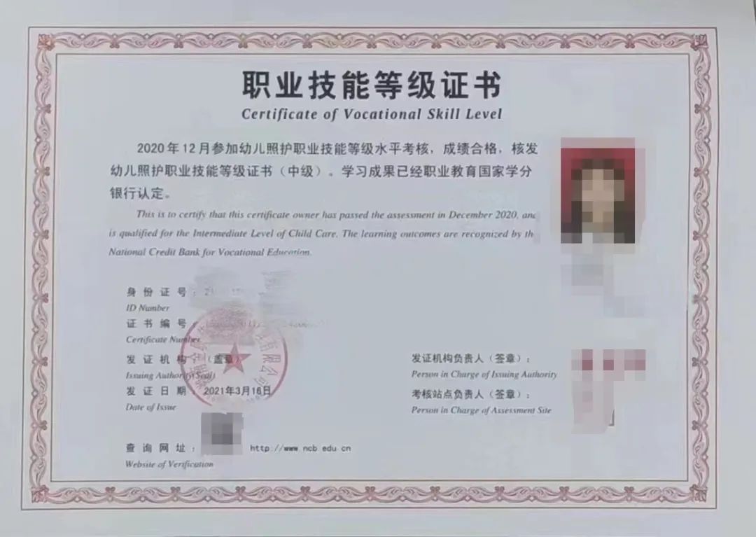 幼儿照护职业技能等级证书、育婴员证书、婴幼儿发展引导员证书、幼儿园教师资格证书、营养保健师证书、健康管理师证书、保育师证书、蒙台梭利教师资格证书、亲子教育培训资格证书、感觉统合培训资格证书、家庭教育指导师证书、普通话等级证书等。