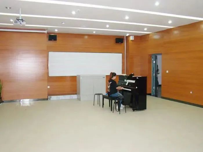 4670平方米的艺术中心,有合唱室1个、舞蹈教室4个、琴房64个、视唱室2个、数码钢琴教室2个,能容纳近1000人的多功能专业汇报演出厅1个。