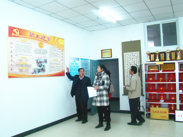 迎检队伍检查“职工之窗”展板内容