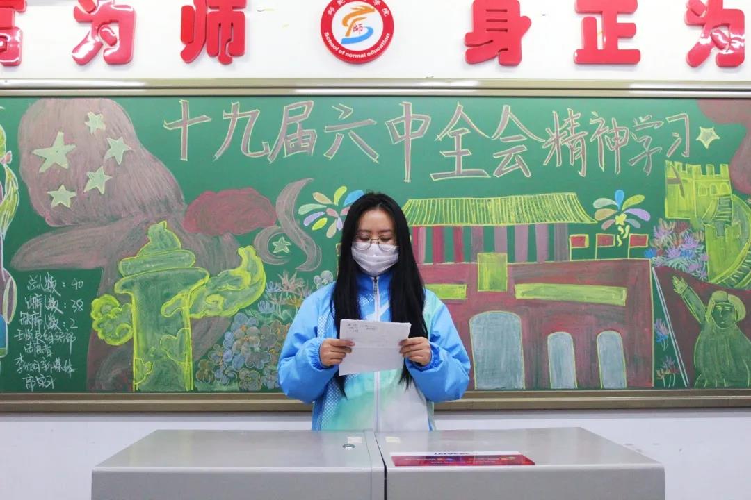 汲取党史养分,耕耘青马沃土。在建党百年之际,党中央召开十九届六中全会,全面总结党的百年奋斗重大成就和历史经验,体现了党重视和善于运用历史规律的高度政治自觉,体现了党牢记初心使命、继往开来的自信和担当。作为青年马克思主义教育下的大学生,师范教育学子一定不忘初心,牢记使命,在党的领导下、在团组织的带领下砥砺前行。学习会议精神,运用自身能力,投身到团组织工作和建设学校青马工程中去,不为虚度年华而悔恨,也不因碌碌无为而羞愧。
