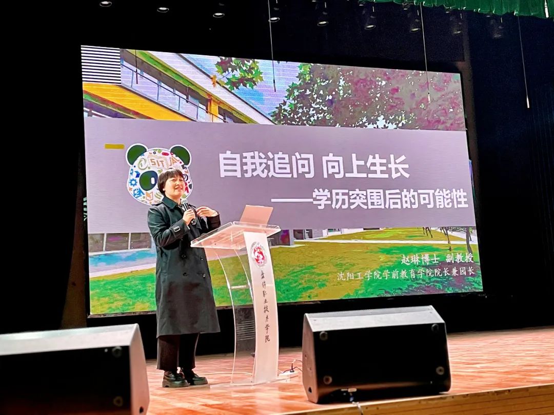 特邀嘉宾沈阳工学院学前教育学院院长赵琳(学院2001级小学教育专业校友)以“哲学根基与教育初心”为主题作报告。作为学前教育学博士、省级教育专家,她结合《课程模式与早期教育》研究成果,寄语学子“以思辨育人,永葆童真热忱”,引发师生共鸣。
